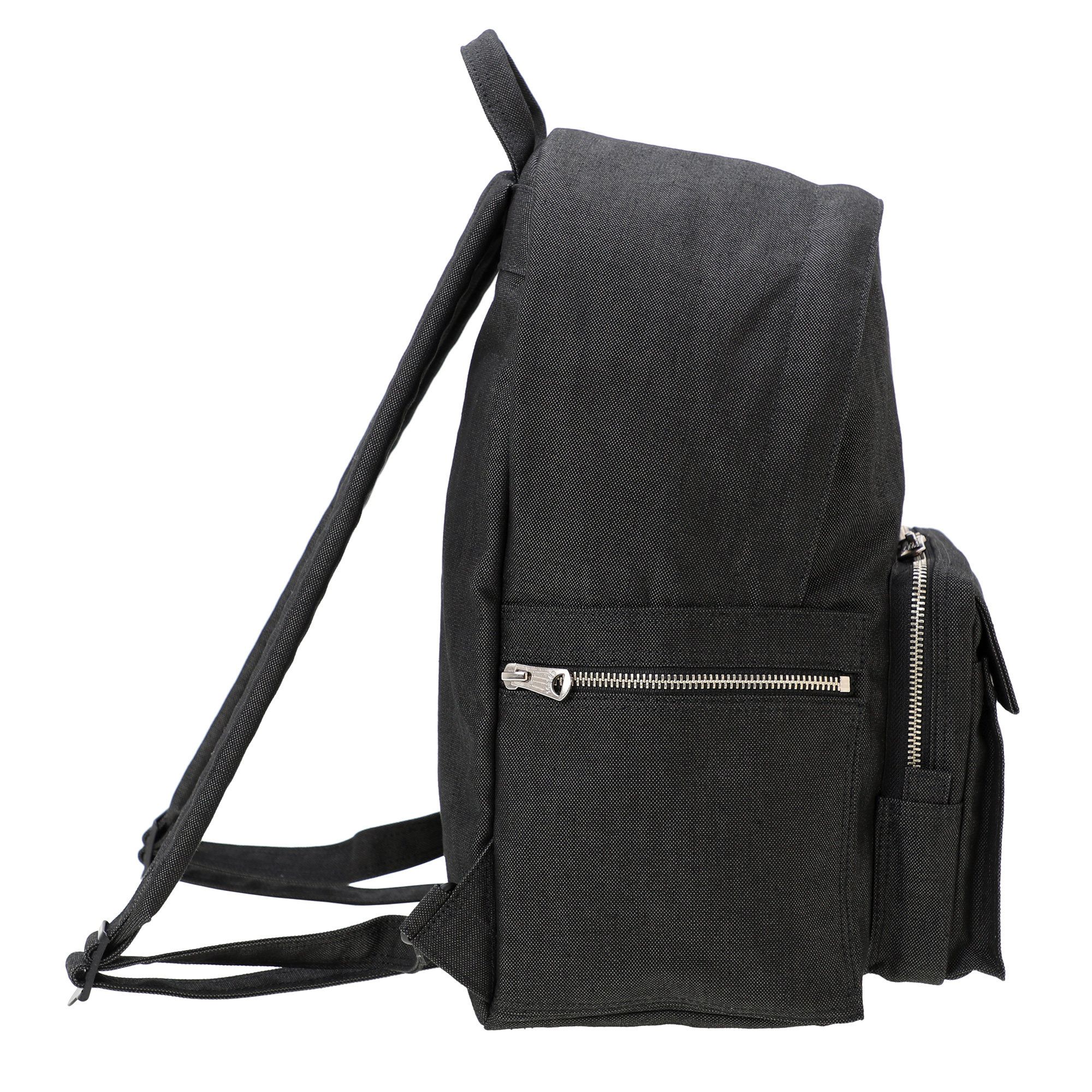 デイパックはオン・オフどちらのシーンでも使えるシンプルなデザインが特徴です。収納力のある前面のファスナーポケット以外にも側面にポケットを備えており、ペットボトルや折り畳み傘、ワイヤレスイヤホンなどを収納することができます。