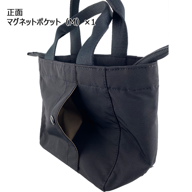 背胴のポケットはマグネット式で、