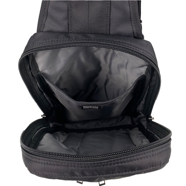 ・正面 ダブルファスナーポケット ペンホルダー×1 フリーポケット(S)×1 ・メイン収納 ダブルファスナー開閉 フリーポケット(L)×1 |