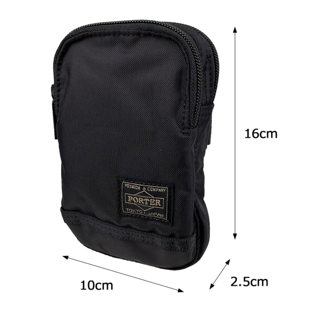 ボンディング加工を施した軽量な生地をメイン素材にし、 ベーシックなデザインでより幅広い層に向けた カジュアルシリーズの「PORTER FLASH」です。 生地の切り替えで立体感を出した ポケットやテープ使いなど要所にミリタリーの ディテールを取り入れつつ、 ベーシックなデザインにまとめます。 ナイロンオックスにボンディング加工を施した、 手触りがよく軽やかな素材を使用しています。 本体生地の表面にはテフロンファブリックプロテクター加工を、 ファスナーはテープ部分に簡易的な撥水加工を施した YKK Water-Rファスナーを組み合わせることで カバン全体の撥水性を高めています。 さらに内装のリップストップタフタにも シレー加工と撥水加工を施しており、 小雨程度の雨なら中の荷物が濡れる心配はありません。 カバンのフィルムに丸みを持たせることで 柔らかな印象を与え、ユニセックスで使える カジュアルな佇まいもポイントです。 こちらはポケットの延長のような 感覚でお使いいただけ、 小物類中心の収納にぴったりなショルダーポーチです。 基本的に付属のストラップで首や肩から掛けて持ち歩けますが、 フックでカバンにぶら下げたり、 ベルトループに通して腰に装着したり、 お好きな形で持ち運べるので嬉しいポイントとなっています。 また収納部は2層式となっており、 モバイルバッテリーやIQOSなどの持ち運びにも便利で、 小ぶりながらに仕分けがしやすい仕様となっています。 |