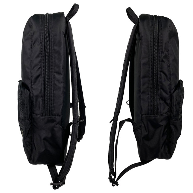 ボンディング加工を施した 軽量な生地をメイン素材にし、 ベーシックなデザインでより 幅広い層に向けたカジュアルシリーズです。 生地の切り替えで 立体感を出したポケットや テープ使いなど要所に ミリタリーのディテールを取り入れつつ、 ベーシックなデザインにまとめています。 ナイロンオックスに ボンディング加工を施した 手触りがよく軽やかな 素材を使用しています。 本体生地の表面には テフロン〓ファブリックプロテクター加工を、 ファスナーはテープ部分に簡易的な 撥水加工を施したYKK Water-R※ ファスナーを組み合わせることで カバン全体の撥水性を高めています。 さらに内装のリップストップタフタにも シレー加工と撥水加工を施しており、 小雨程度の雨なら中の 荷物が濡れる心配はありません。 カバンのフォルムに 丸みを持たせることで 柔らかな印象を与え、 ユニセックスで使える カジュアルな佇まいもポイントです。 マチ付きの立体感の あるフロントポケットは デザイン性を高めるとともに、 出し入れが頻繁な デザイン性を高めるとともに、 荷物の収納に適しています。 ※テフロン〓ファブリック プロテクター加工について テフロン〓加工は目には見えませんが、 高い撥水・防汚効果があり、 製品をより良い状態に保ちます。 繊維一本一本を包み込むため 生地の通気性を損ないません。 (テフロン〓は米国デュポン社の商標です。) ※YKK Water-R(撥水ファスナー)は コイルファスナーのテープ部分に 簡易的に撥水処理を施したもので、 完全に水の侵入を防ぐものではありません。 |