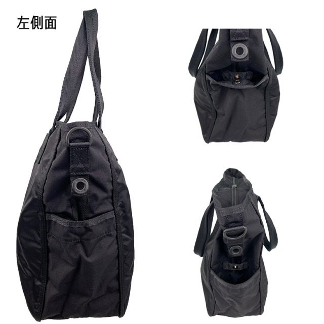 ・側面 スナップボタン留めポケット(S)×2 ・メイン収納 ダブルファスナー開閉 ファスナーポケット(L)×1 フリーポケット(M)×2 |