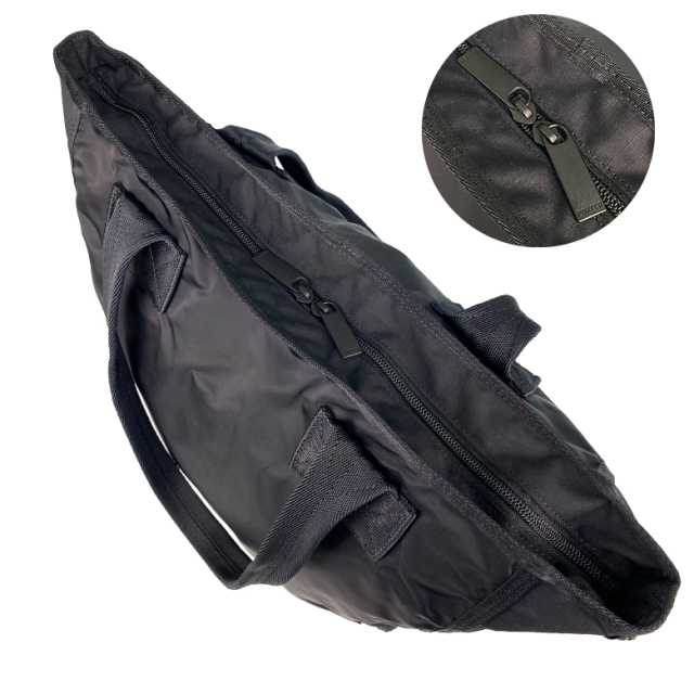 風合いの異なる手触りの良い2種類のナイロン素材を採用し、 ミリタリーテイストでライトウエイトに仕上げた 「PORTER FRAME(フレーム)」シリーズです。 ミリタリーアイテムが本来持っている デザイン性だけではない普遍的なディテールを重視し、 そうした要素を随所に取り入れることで シリーズコンセプトを高めています。 要所に見られるハトメも ミリタリー由来のデザインポイントです。 メイン素材にはツヤのあるセミダルナイロン糸を 超高密度に織り上げたナイロンツイル生地と、 摩擦や引裂に強い特性を持つマットな フルダルコーデュラナイロン糸で織り上げた リップストップ生地の2種類を使用しています。 どちらもナイロン素材ですがそれぞれの生地の光沢、 質感のコントラストが、 このシリーズならではの表情です。 メインにはしっかりとしたハリのある コーデュラナイロンリップストップ、 動きを出したい箇所にはしなやかな ナイロンツイルと素材を使い分けています。 通常は表面から見えないように縫製するまとめ部分 (本体と底部など、部位を縫い合わせた箇所)を 外側に出し、厚みのあるナイロンテープで 縫い付けることで型崩れがしにくい 仕様にしています。 また、底マチやリュックストラップの付け根など、 負荷がかかる部分にはナイロンテープを配して補強し、 ハンドルなど強度が必要な部分にも、 補強のステッチワークを施しました。 また、縫製後に製品洗いをすることで 柔らかな質感に仕上げ、持ちやすく、持った時の印象も こなれた雰囲気にしています。 縮み方(サイズ)、シワ感に差異が出て 一点一点表情が異なることも特徴の一つです。 ※製品洗いについて 洗いにより色合いの差異や歪み、 シワが生じますが一点一点異なった 表情になるのが魅力です。 また、生地の縮み度合いが多少異なりますので、 十分にご理解の上ご使用ください。 ※アテンション下げ札が付きます。 |